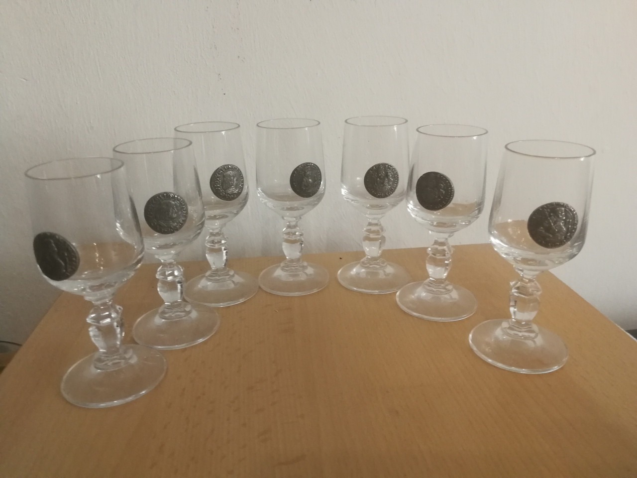 Скляні чарки на ніжці з олов'яної медаллю, Німеччина. Висота 11,5 см. Ціна за 1 шт